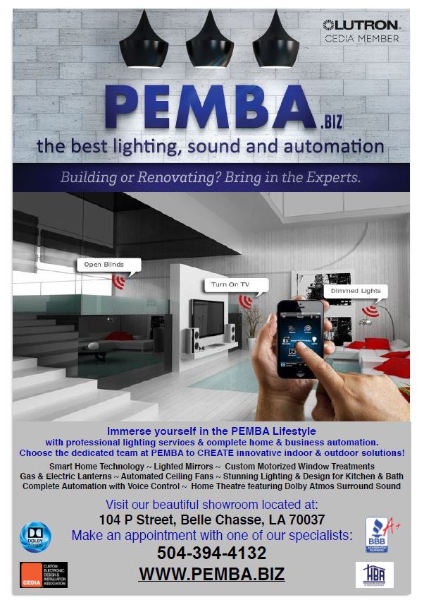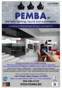 PEMBA provides solutions for lighting, sound, electrical and automation. You can come see us in our showroom before purchasing and meet with one of our specialists to select the best lighting, sound, electrical and automation for your project. Our design services give you a complete solution. New customers every day tell us that we have the best prices and best service. Come in to browse or make an appointment to plan for a whole house or building.